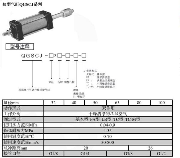 轻型气缸QGSCJ双活塞杆 可调行程轻型气缸